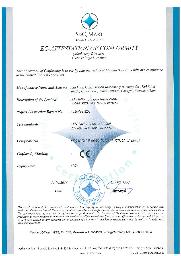 10月26日,D120、D80動(dòng)臂式塔機(jī)通過(guò)鑒定;