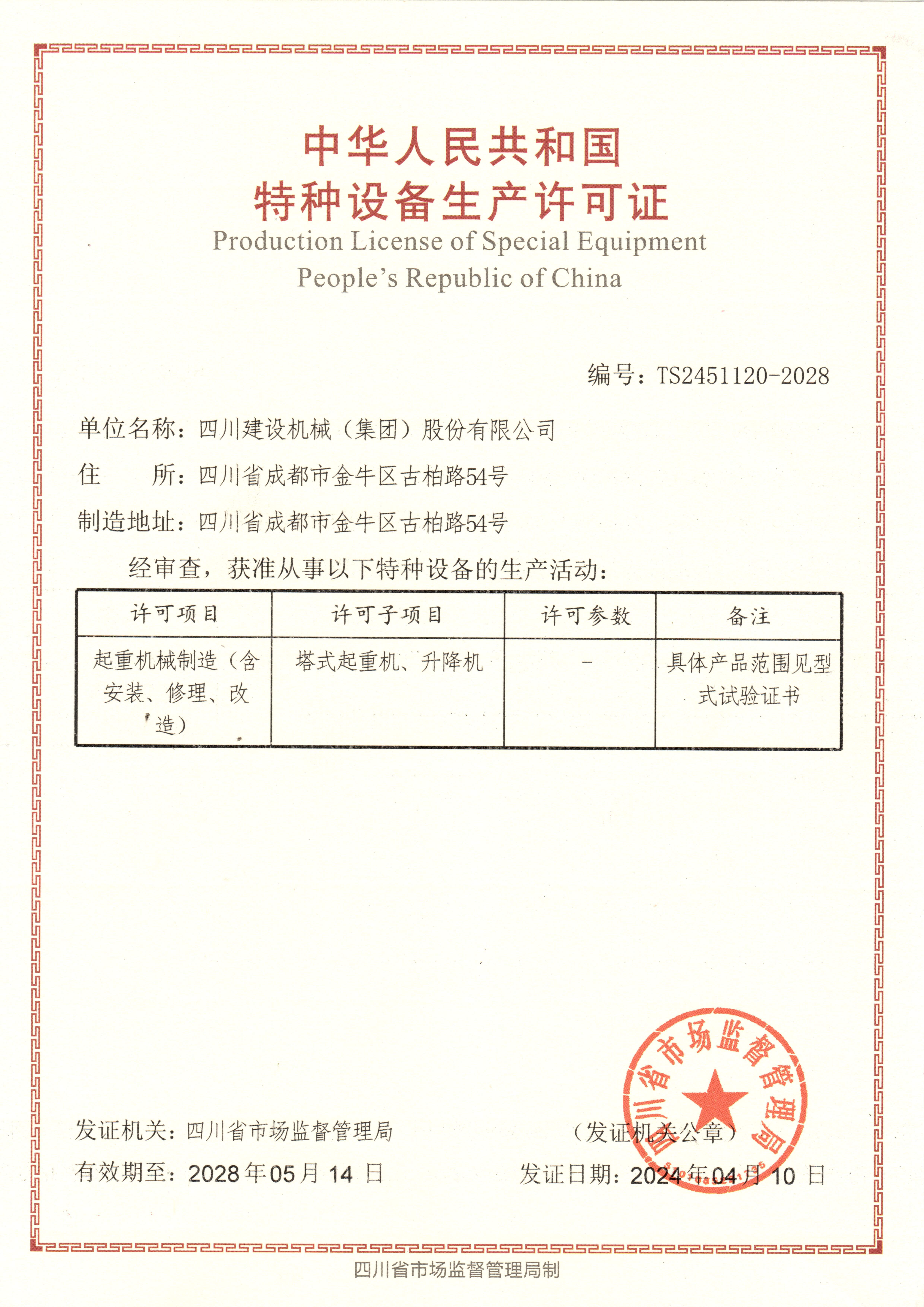 2月川建M1200塔式起重機(jī)獲得四川省科學(xué)技術(shù)進(jìn)步三等獎(jiǎng);