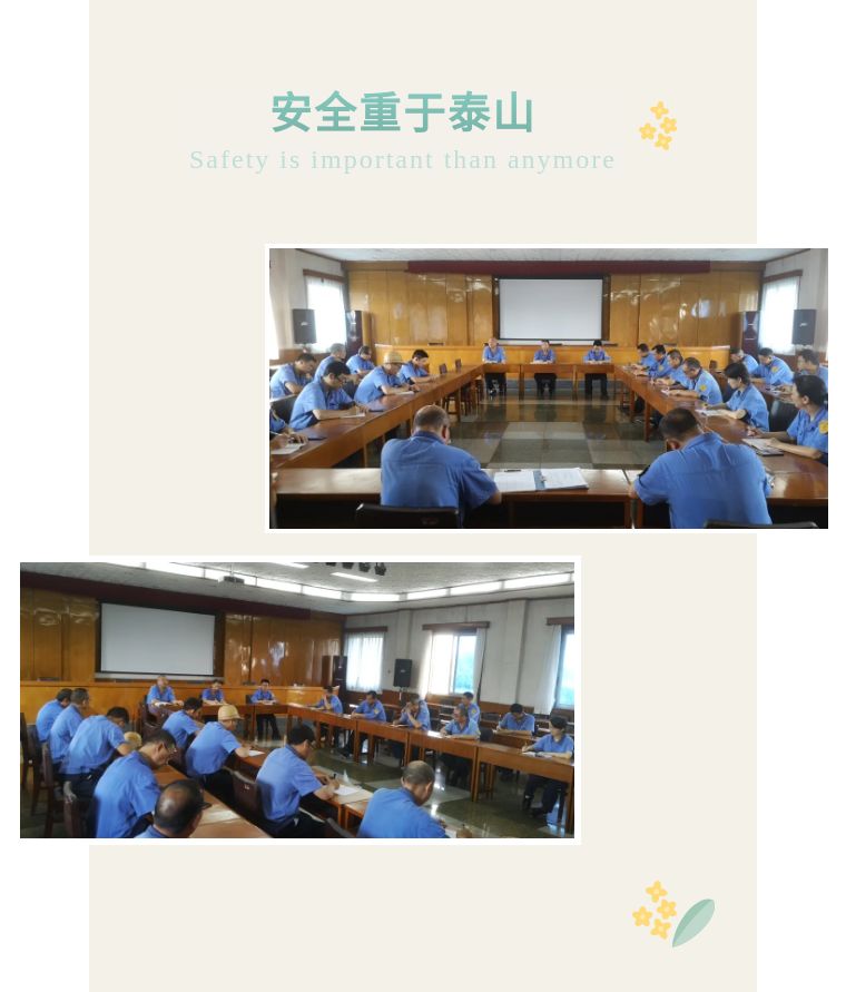 (集團(tuán))公司始終貫徹安全生產(chǎn)是公司生存發(fā)展重中之重的理念,安全生產(chǎn)工作要常抓不懈,各部門、各車間必須明確職責(zé),要始終堅(jiān)持“安全第一、預(yù)防為主、綜合治理”的方針,要落實(shí)“四不放過”工作,認(rèn)真做好安全防范工作,杜絕安全生產(chǎn)事故發(fā)生。