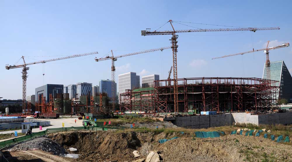 C7050在成都大魔方世界級演藝中心工程建設(shè)中,此工地共有川建塔機6臺,其中C7050塔式起重機1臺,C7030塔式起重機4臺,C5013塔式起重機1臺。